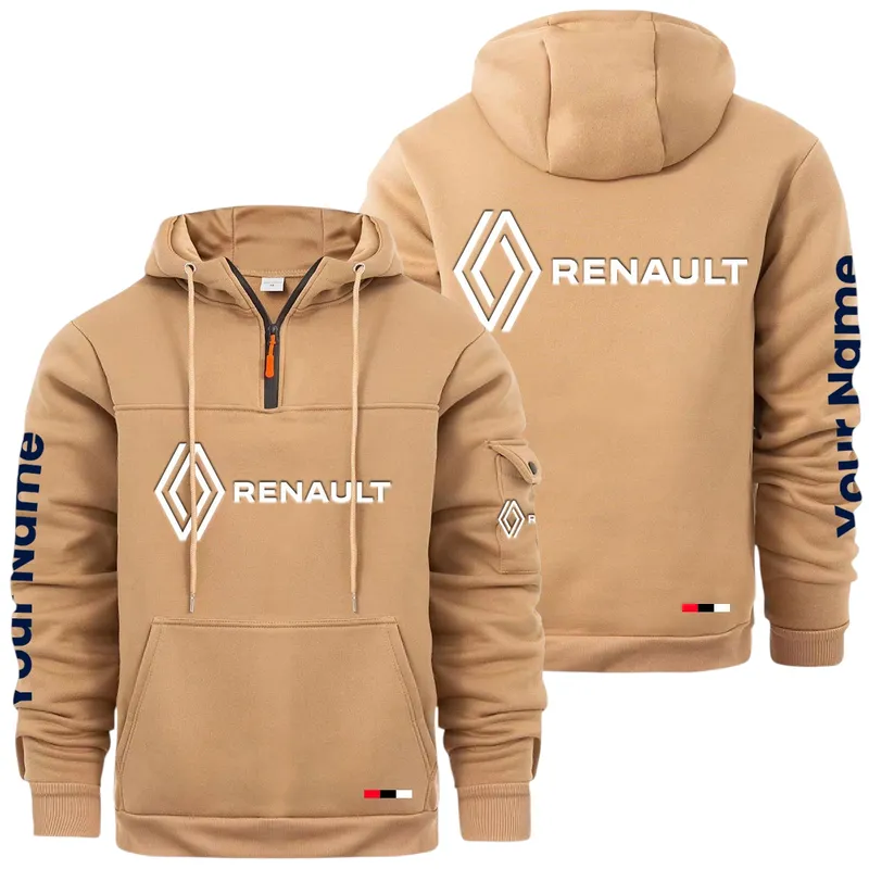 Retro Motorcycle Large Pocket Hoodie, Automotive Spirit Pocket Hoodie CAR514 - Khaki